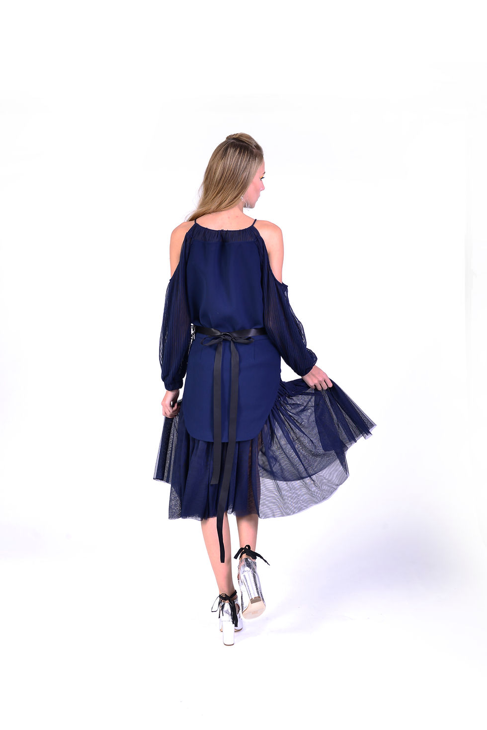 FEATHER DRESS W/ PLEATED UNDER SKIRT